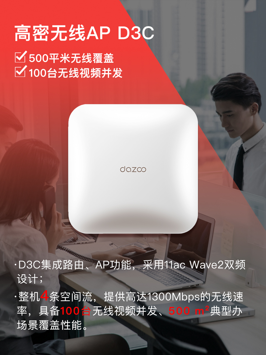 ●大型企业的园区办公环境,人员集中、高密,对无线网络设备的并发带机性能有较大的挑战;